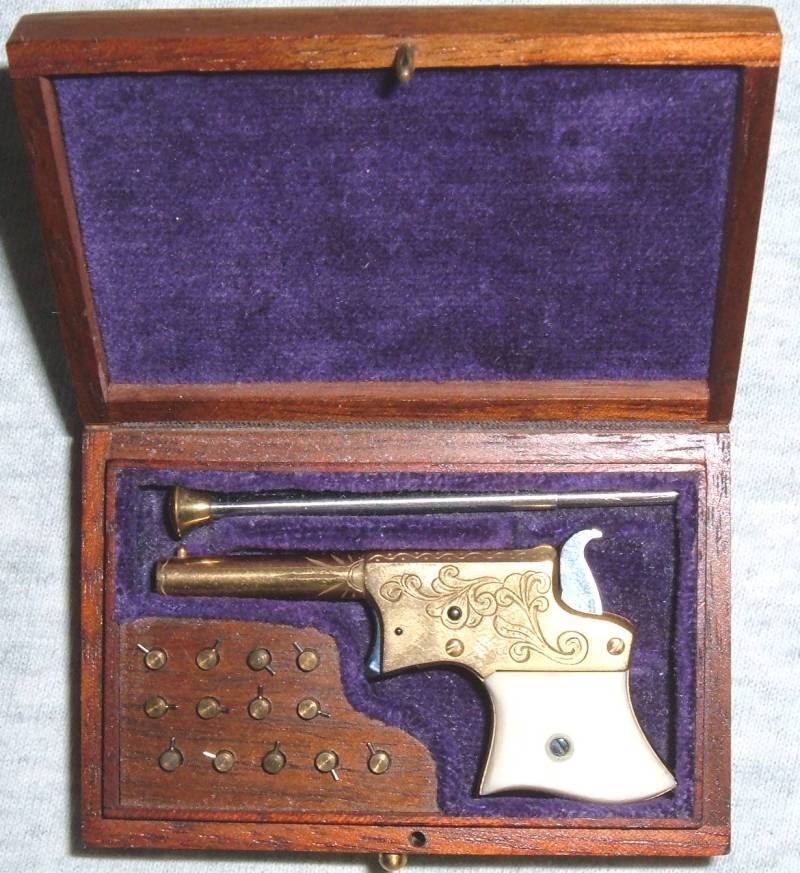 A half scale Remington vest pocked parlor 2mm rimfire pistol by Master Maker Larry Smith of Florida. 3" long (sold)