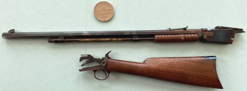 A 1/3 scale Winchester model 1890 22. I made from drawings I drew up in Autocad from measurements I took from a dissembled original 1890. (this is still in my collection)